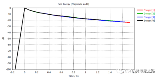 上图可看到我们在1.6ns左右停下来,如果这时候查看能量曲线,其实也就只达到-20~-30dB左右。