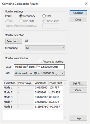 在后处理Combine result 这里会根据MWC各个模式自动生成激励信号,直接点击Combine,就生成新的三维场,这里和端口直接激励拿到的三维场应该是一样的。有机会我们找个案例进行精准比较再和大家分享。