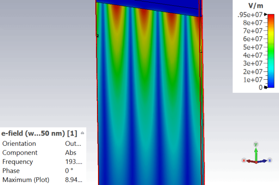 如果还是不清楚这里在仿真什么的话,加长传播方向,展示个表面等离子极化激元的波导传播动图就明白了。