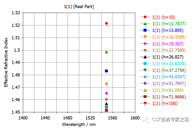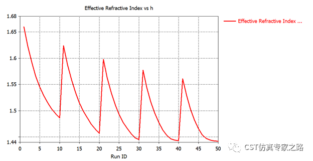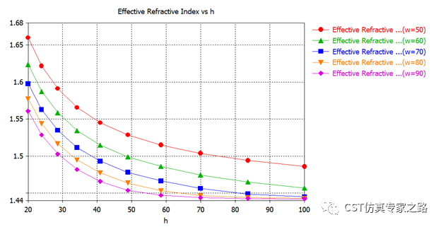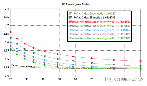 这里也可以通过后处理提取一下每个W的有效折射率曲线,比如w=50:
