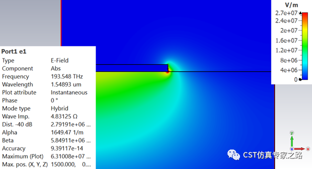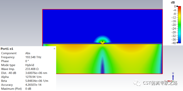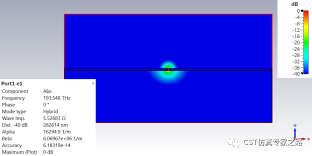 为了形成缝隙波导,截断的IMI结构的边界模式也要分析一下,同样也是获得有效模态指数。注意这里二维结构建模就是截面了,传播方向为Z。