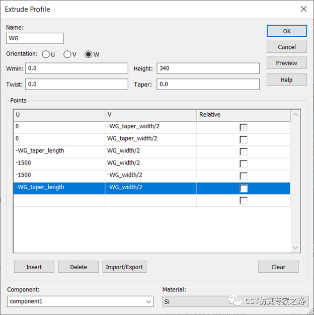 用Extrude功能,输入参数化坐标,切出金属波导: