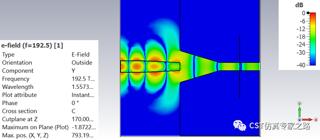 仿真结束后查看电场Y分部: