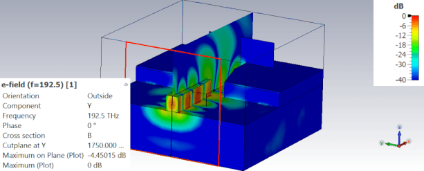 其他边界为open,XZ平面是电边界对称,这样才能让基本模电场是Y方向,符合缝隙波导MIM的表面积等离子体模式。