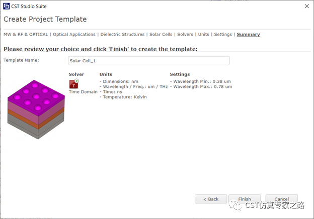 1. 太阳能薄膜作为光学元件仿真的一类,CST有模板可用。
