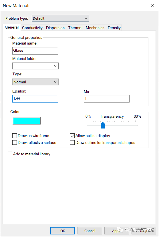 添加一个玻璃材料: