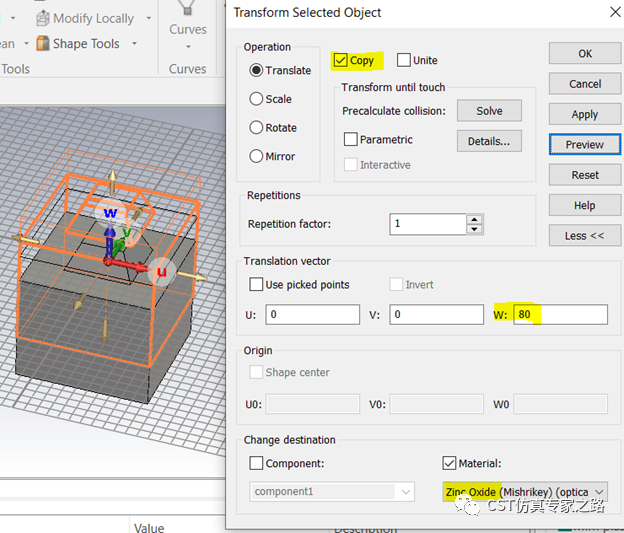 然后复制上移,材料为氧化锌,先不做布尔运算。