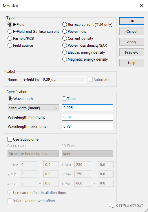 添加E场监视器: