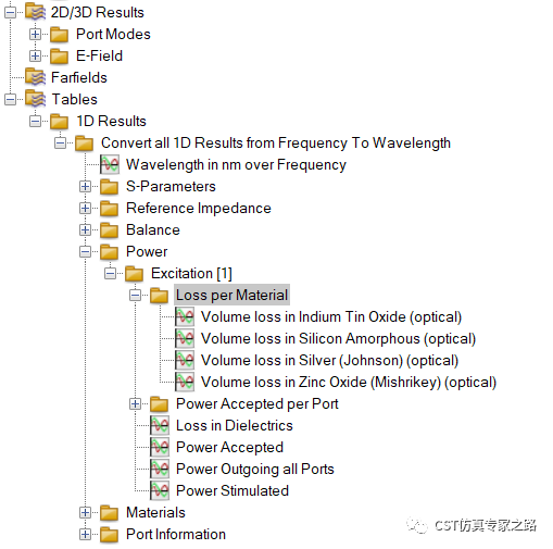 仿真结束后,power loss可见非晶硅为主要的吸收电磁波功率的材料,端口激励为0.5 W均值,所以总体的吸收率还是比较高的: