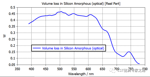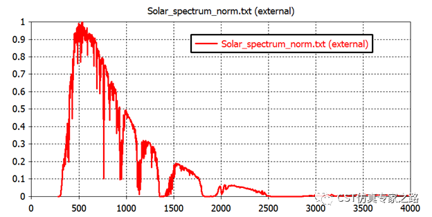 CST软件中的太阳能薄膜的功率吸收可用光频电磁波在介质材料中的损耗来计算。本案例计算非晶硅的功率吸收,然后考虑真实太阳频谱,计算有效吸收频谱。