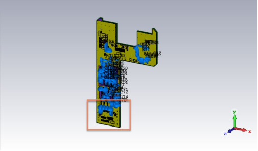 本期介绍介绍在CST里一个实用的modeling操作。切割UV平面,并选择局部进行仿真。如下图是一个手机PCB板子,当然我们可以选择在EDA界面截取部分进行仿真见FAQ 005:如何截取部分封装或者PCB进行仿真。其实在三维中,我们也可以用手动切割的方法进行截取模型。这种方式通用于各种模型。