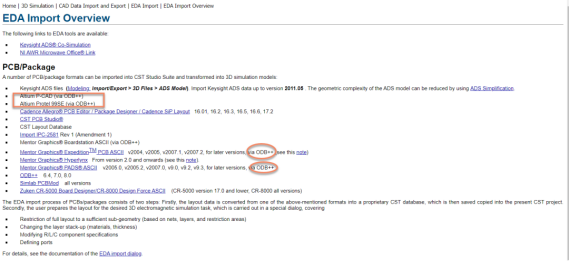 对于CST的EDA import,支持的主流软件如下: