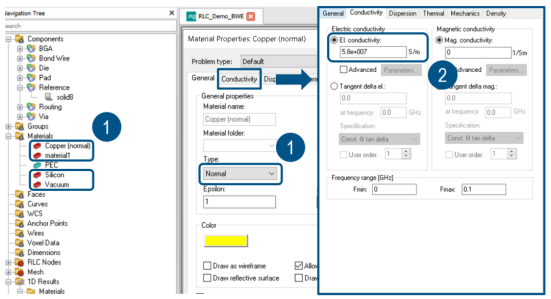 所有的材料无论金属还是介质都需要设置成Normal,并设置相应的电导率,如下图所示: