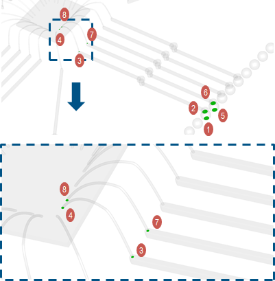 这样如下图,设置了8个Node,1#是BGA的进口,2#是Rounting线的入口,3#是Bondwire的入口,4#是到达Die的位置,5#到8#也是同样的情况,如下图所示: