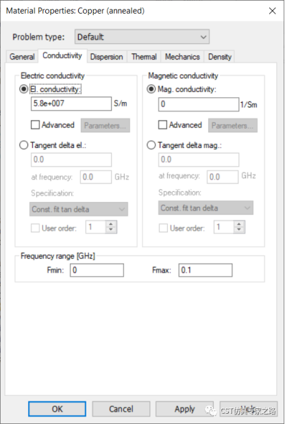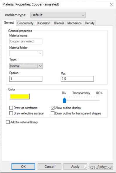 首先创建一段金属圆柱体线,如下图,注意这里的材料必选改成Nomal材料。这里材料是Copper,电导率5.8e7S/m。