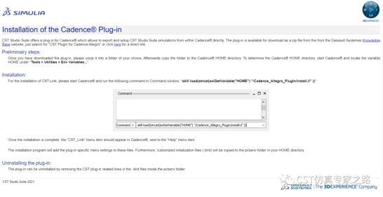 2.如果Allegro安装在不同的电脑上则需要在那台电脑的Allegro安装CST Pluge-in插件。详见CST帮助文档中的安装说明如下图: