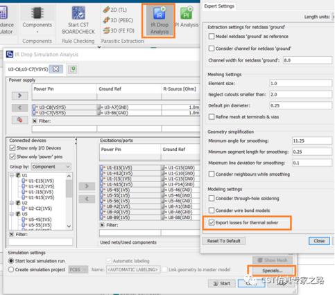 首先,进行IR drop仿真之前,要在特殊设置中,选中导出损耗给热仿真。