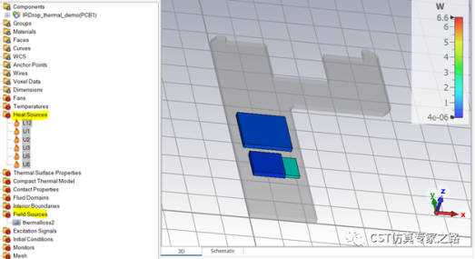 元件热源如图,除此之外,直流损耗的热源以场源的形式也被导入,不过要等热仿真结束之后才能看到。