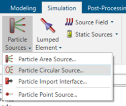 然后定义粒子源,选Particle Circular Source,再选阴极圆柱的上沿,这里我们假设电子以同心圆的形式产生。默认Emissiondensity 发散密度中的Lines为5,就是5个同心圆区域,points为81,就是图中蓝点个数81。