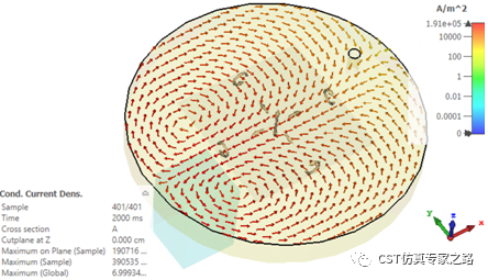 这里电流有两个相反的漩涡,就是涡流,验证了我们的仿真成功计算了涡流效应。