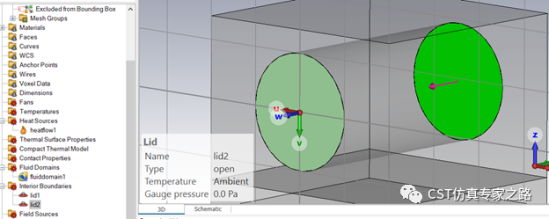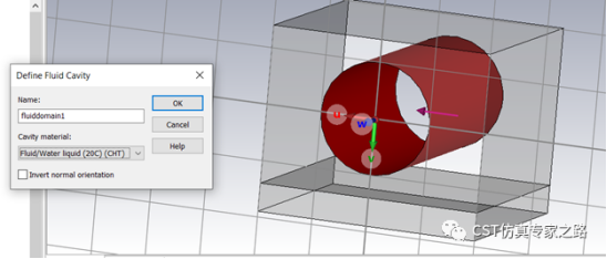 水冷仿真需要定义水流腔体,选择圆柱内面,材料为水流,箭头指向流体。