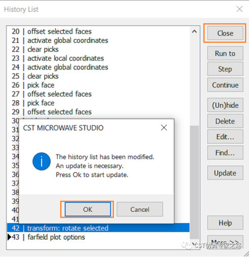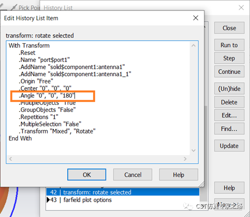 文件另存,将历史树中旋转天线90度改成180,关闭历史树。