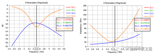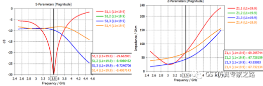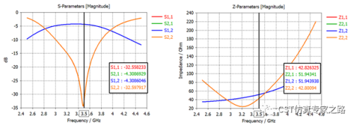仿真后,可见我们可以将S11匹配的更好,Z11更接近50欧姆。那么此时ECC会比平行的好吗?