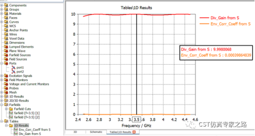 最后,我们看看如何通过远场计算端口1和2之间的ECC: