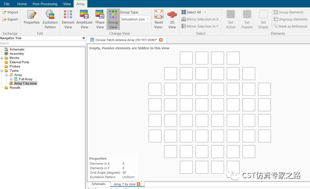 CST圆极化贴片天线阵列 --- 时域T-solver, 分组激励法 By zone(Grouping)