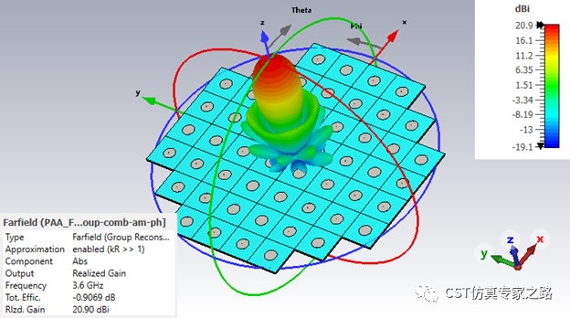 仿真结束后,可见3.6GHz的远场: