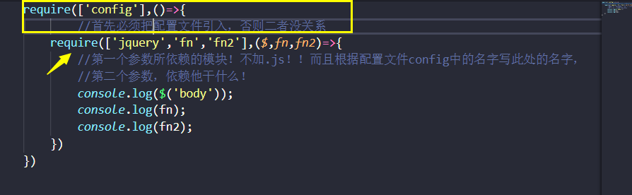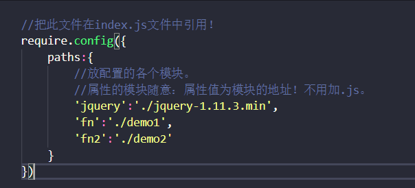 两个参数;参数1:配置文件的名称,参数2:回调函数,里面开始编写各个模块的依赖。