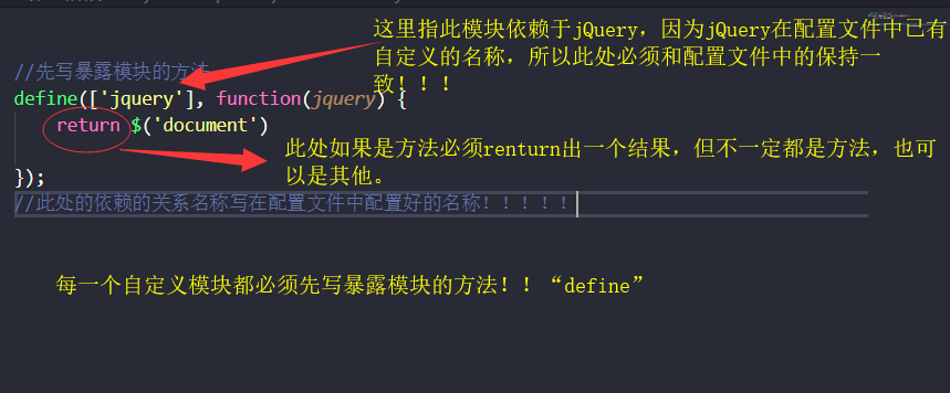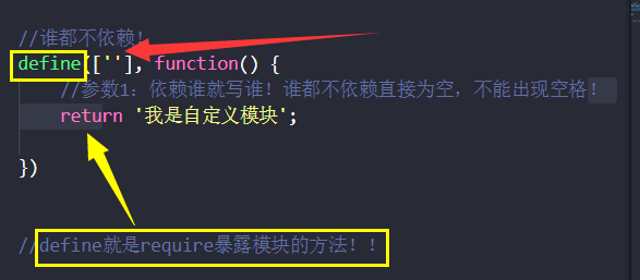 参数2:依赖这个模块干什么,是一个回调函数,里面所传递的参数必须和第一个参数所依赖的名称必须保持一致。