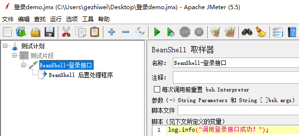 2、在测试片段中创建一个登录的HTTP请求。我们在这个HTTP请求中创建前置和后置处理器,方便在其他地方调用测试片段时,获取其返回值。