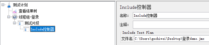 include控制器一般也是与测试片段一起使用,用于在一个线程组中,导入一个测试片段。