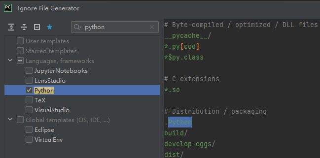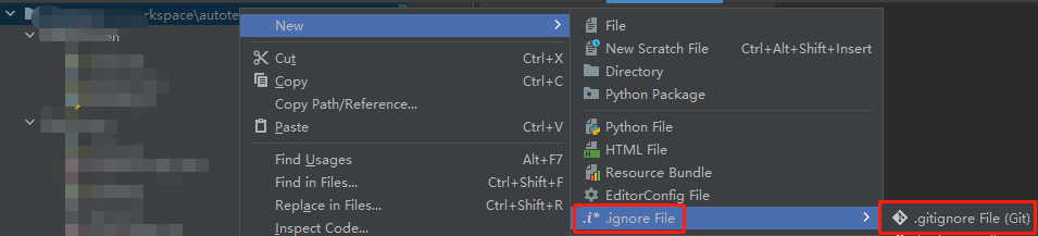 安装完成后,右键项目根目录,新建.gitignore File(Git)文件
