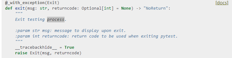 def test_first(): print("first") def test_second(): print("second") pytest.exit("退出测试") def test_third(): print("third")