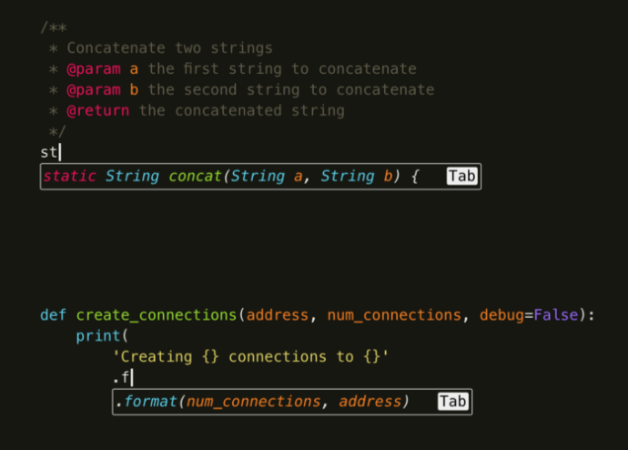 该插件主要在于可以帮助我们自动填充代码,由于是在人工智能技术的驱动之下,因此每次都可以精准的预测我们将要填充的究竟是什么代码。