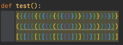 该插件的作用在于能够将括号以不同的颜色标注出来,这样就能够在括号很多的时候,清楚辨别哪个括号是一对,支持多种语言。如下图所示