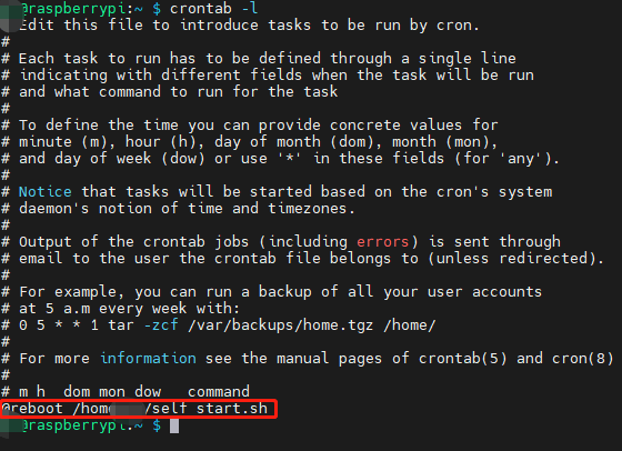 通过@reboot 命令,后面填入需要开机自启的脚本路径