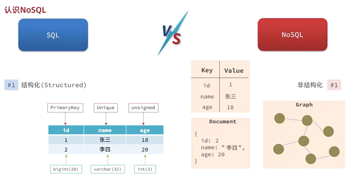 1. SQL具有结构化,NoSQL不具有结构化