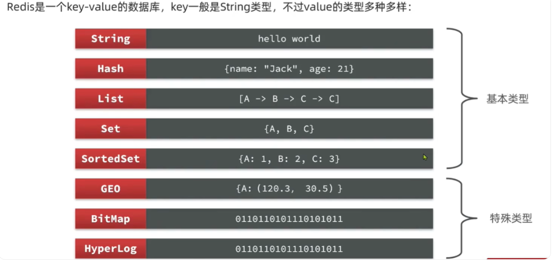 Redis是一个 key-value 的数据库,key一般是 String 类型,不过 value 的类型多种多样。