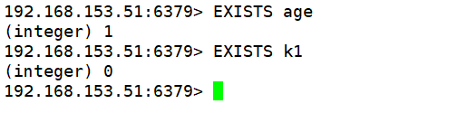 3. EXISTS:判断 key 是否存在(1代表存在, 0代表不存在)