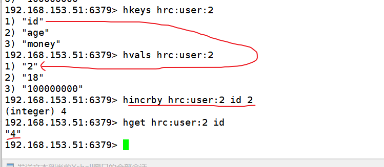 例如:incrby num 2:让 num 值自增2