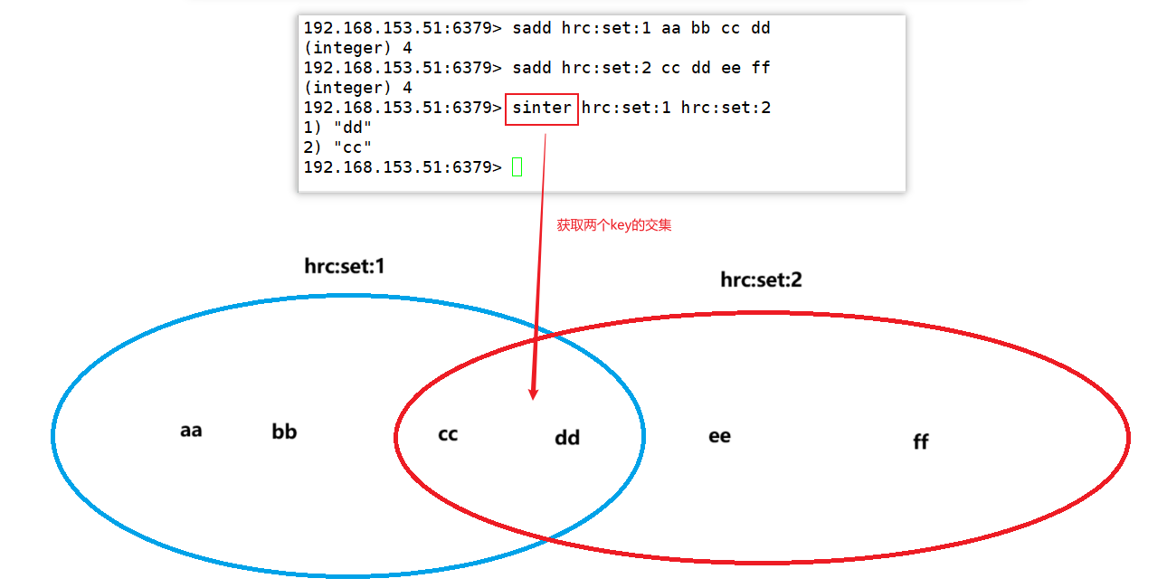 5. SINTER key1 key2 ....:求出key1 和 key2 的交集