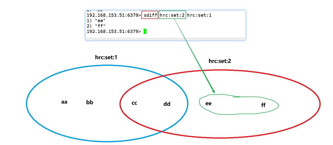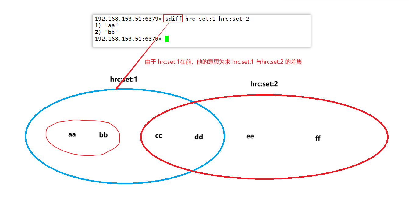 注意:如果 hrc:set:2在前面,即拿 hrc:set:2 的差集