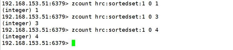 6. ZCOUNT key min max:统计 score 值在给定范围内的所有元素的个数