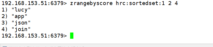 9. ZRANGEBYSCORE key min max:按照score 排序后,获取指定score范围内容的元素