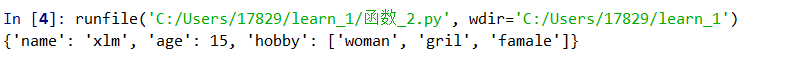 在储存完x之后,后面的值都以关键字函数储存为了字典的形式