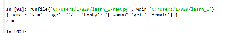 1 zidian = {"name":"xlm","age":15,"hobby":["woman","gril","famale"]}