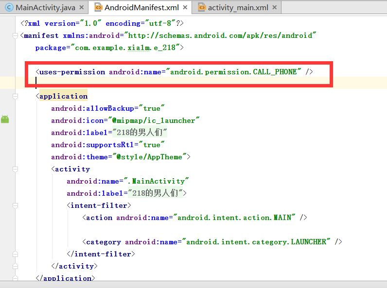 <uses-permission android:name="android.permission.CALL_PHONE" />